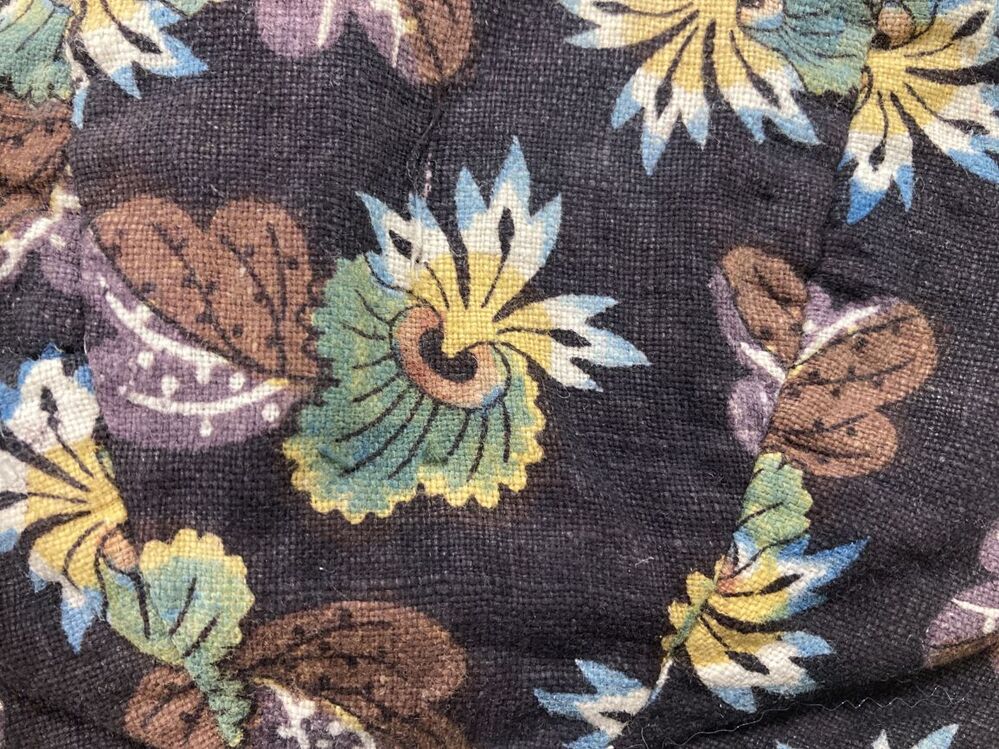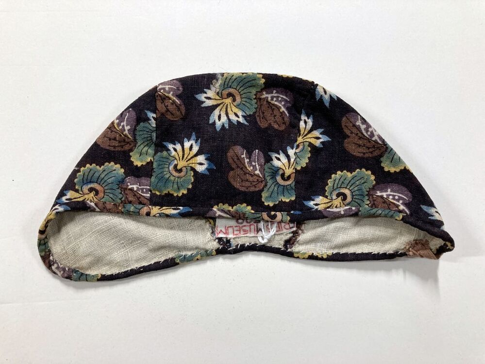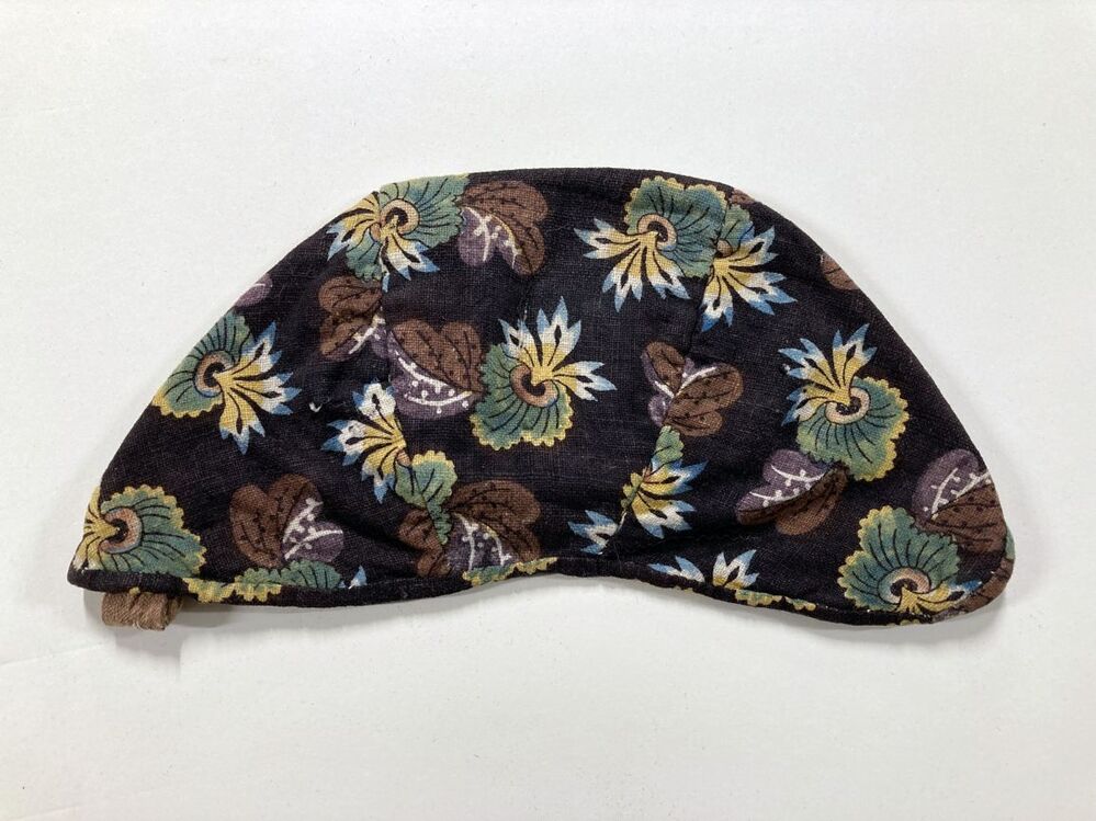 Meisjesmuts, met losse bladmotieven op zwarte grond