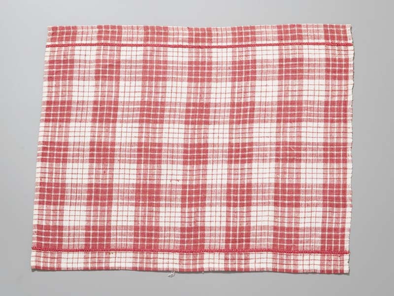 Hindelooper borstlap of foarpeldook van rood en wit bont
