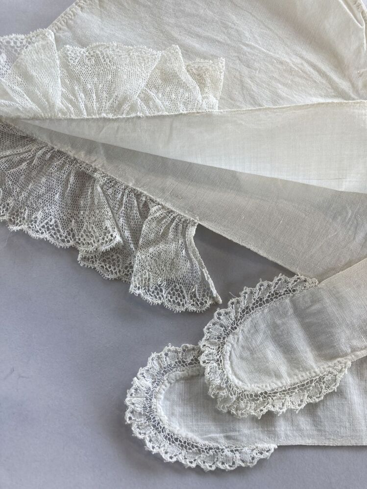 Wit katoenen slaapmuts met lange slippen en kanten randje