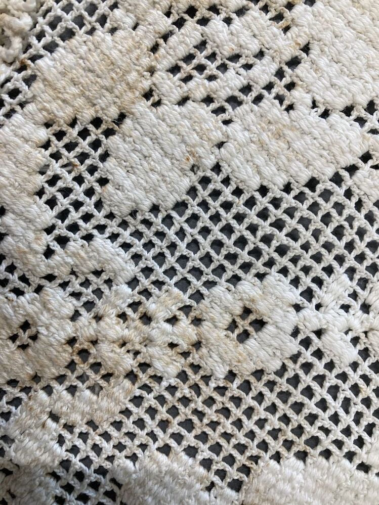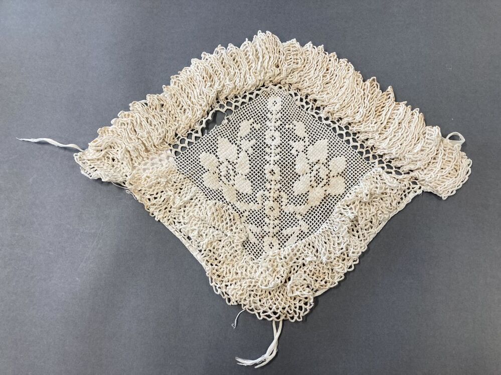 Witte gehaakte muts, onderdeel van groep van drie