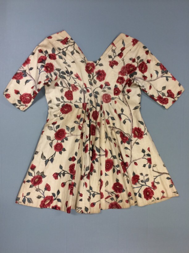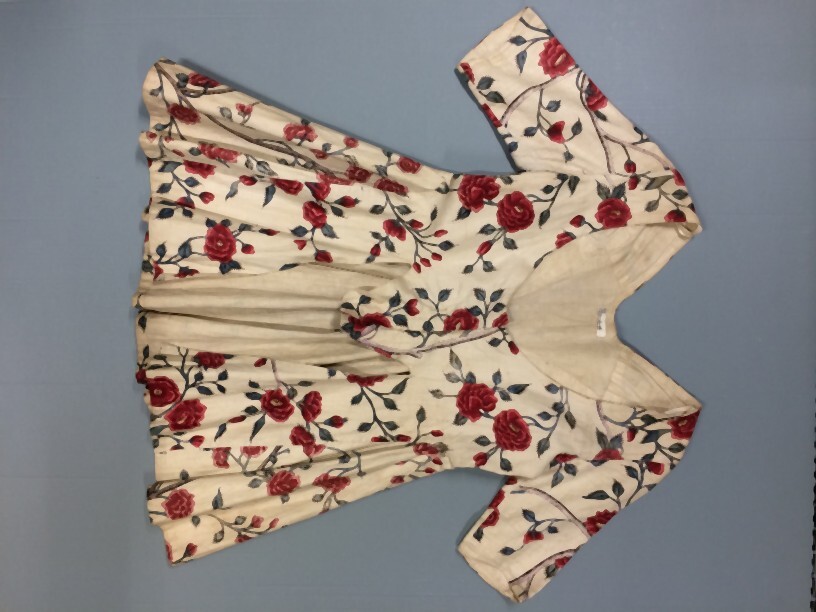 Sitsen vrouwenjak, met aangeknipte vestpandjes en naturalistische rozentakken op witte grond