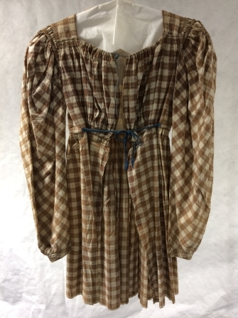 Jak met schapeboutmouwen van bruin-wit geruit katoen met ingeweven kruisjes