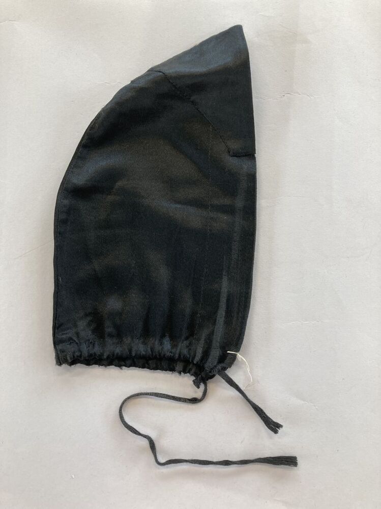 Ondermuts van zwart katoen in satijnbinding, bij oorijzerdracht