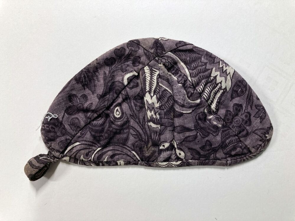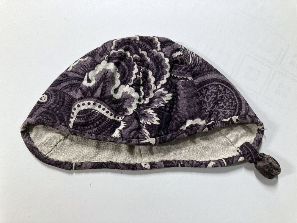 Bedrukt katoenen jongensmuts, met fantasiebloemen op paarse grond