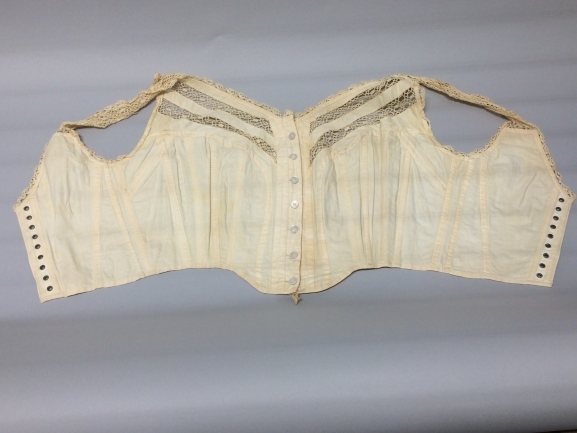 Met baleinen verstevigde korsetten, in één of twee delen, met of zonder schouderbanden, die een kegelvorm aannemen wanneer ze worden aangetrokken; gedragen tot de 19e eeuw. (AAT-Ned) https://data.cultureelerfgoed.nl/term/id/cht/917c46a6-6853-4ff8-8ea4-6032855f9450