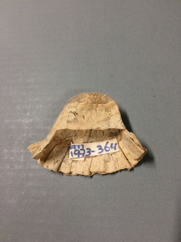 Kleine mutsen voor binnenshuis, met een enkele of dubbele sierstrook als rand aan de voorkant en tot de oren reikend; werden door vrouwen in de 18e eeuw gedragen. (AAT) https://data.cultureelerfgoed.nl/term/id/cht/63d7c4b6-1fa2-4798-b701-ea7115827662