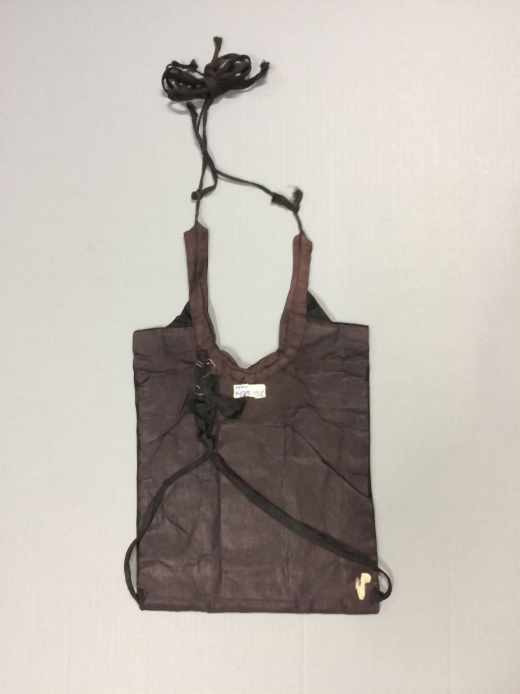 Dasfrontje man van zwart satijn, onder de kraag is een vlinderdasje, verfraaid door driehoeken en rosetten