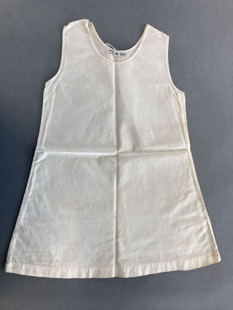 recht meisjes-onderjurkje van wit katoen, gerend geknipt