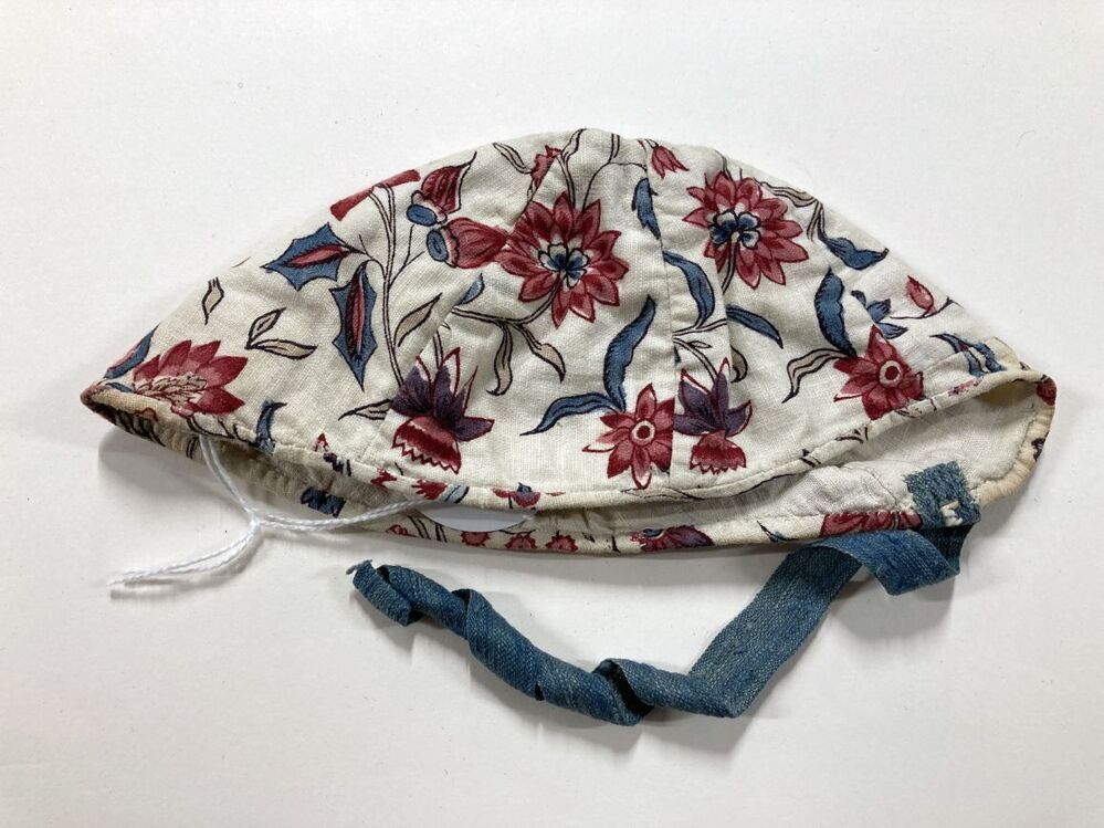 Bedrukt katoenen jongensmuts, met beige bloemstengels op witte grond