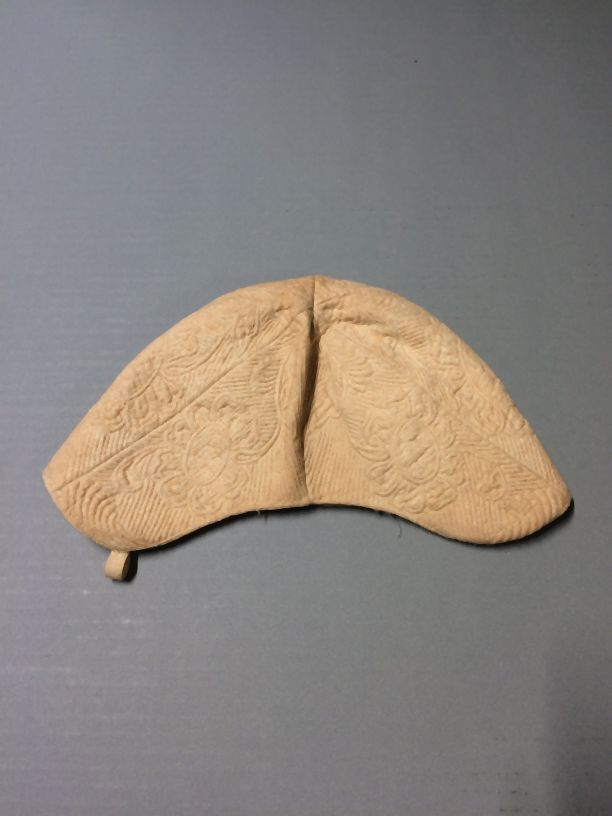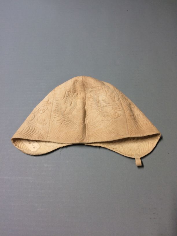 Jongensmuts van wit linnen met zaans stikwerk floraal patroon