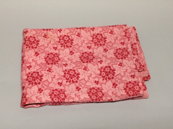 Roze, gebloemde sloop van katoen , zijsluiting met vier knopen en knoopsgaten,
