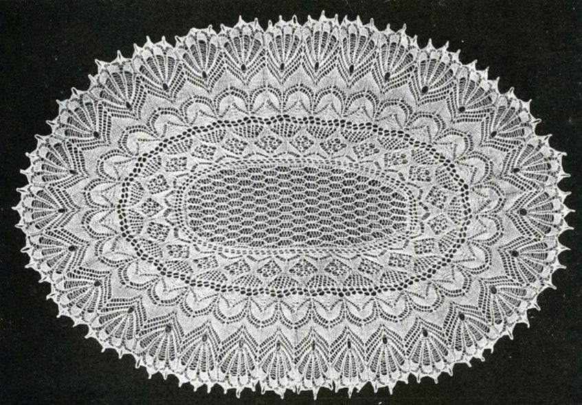 Ovaal kleedje ajour gebreid van wit katoen, naar een patroon uit de Gracieuse