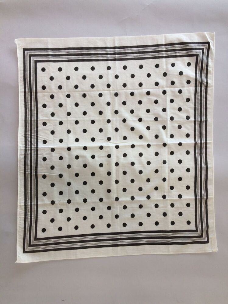 Zakdoek van wit katoen bedrukt met zwarte noppen en gestreepte rand rondom