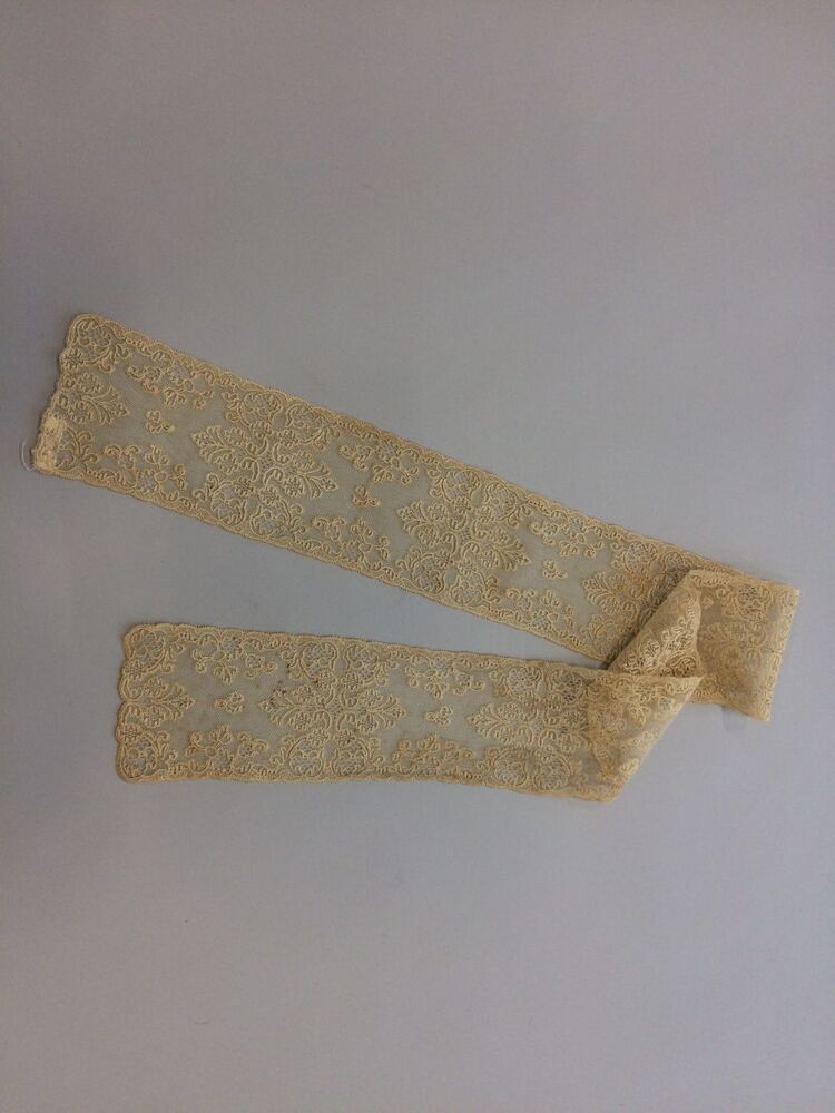 Sjaaltje van crèmekleurig machinale kant, met symmetrische florale motieven