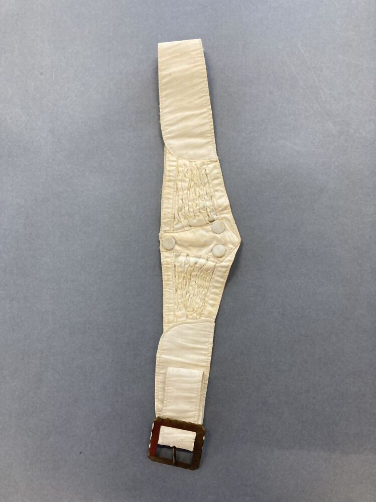 Écrukleurige ceintuur voor versierd met rimpels en 3 knoopjes met gesp achter