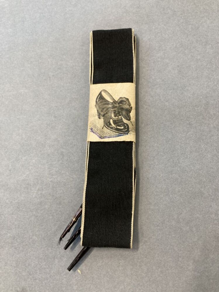 Paar brede zwarte veters met wit randje in oorspronkelijke wikkel