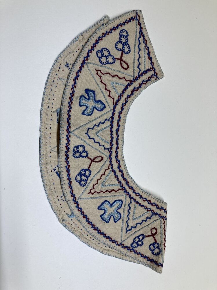 Kraagje van halflinnen met borduursel in blauw en rood