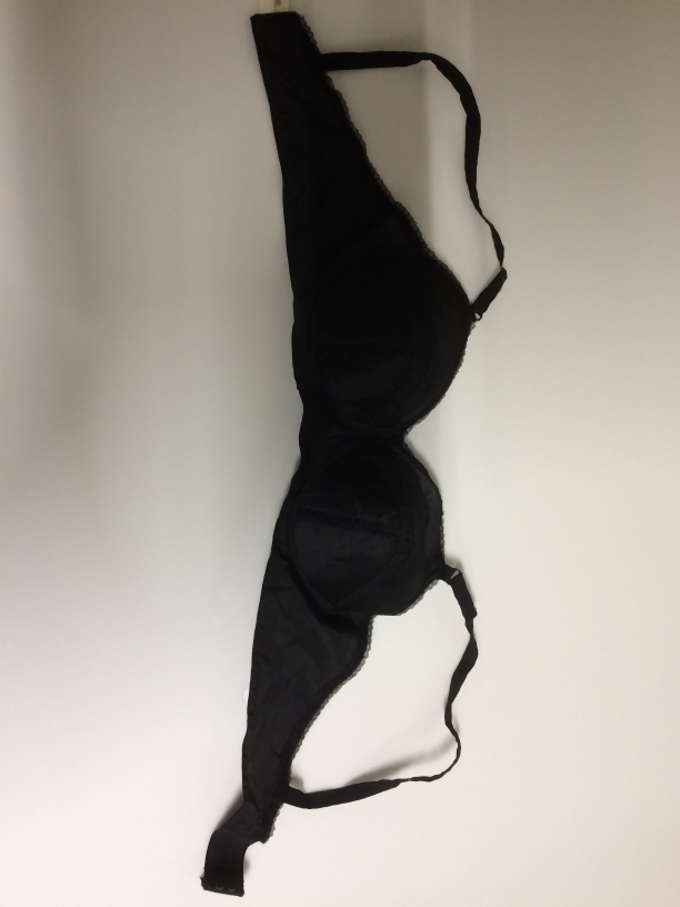 Zwarte bustehouder, maat 80B, onderdeel van beige koffer met lingerie