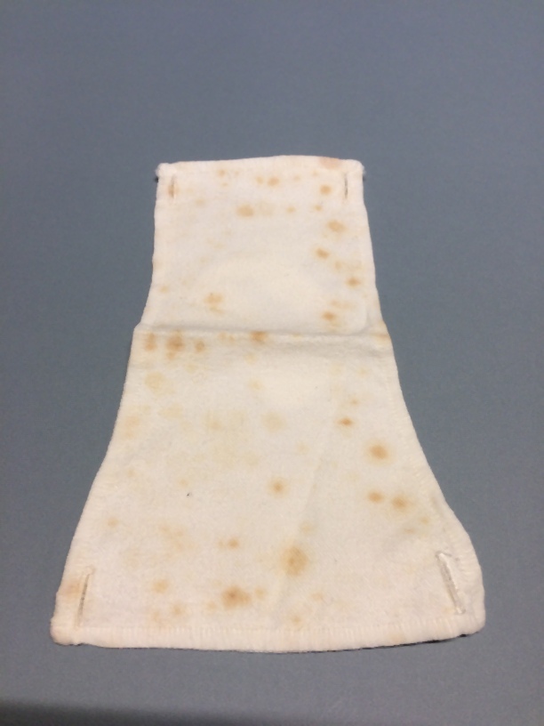 Wit flanellen inlegkruis, onderdeel van beige koffer met lingerie