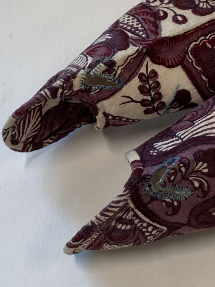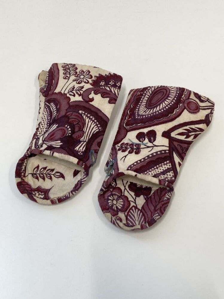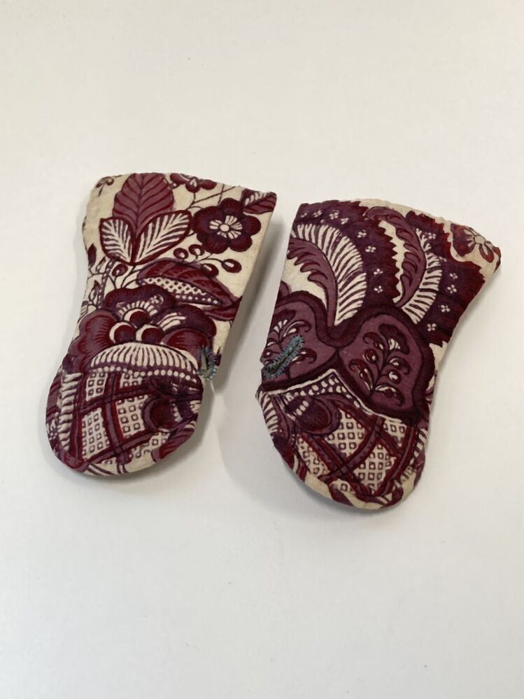 Paar mitaines of polsmouwtjes voor baby van bedrukt katoen met groot floraal motief in paarstinten, met opening voor duim