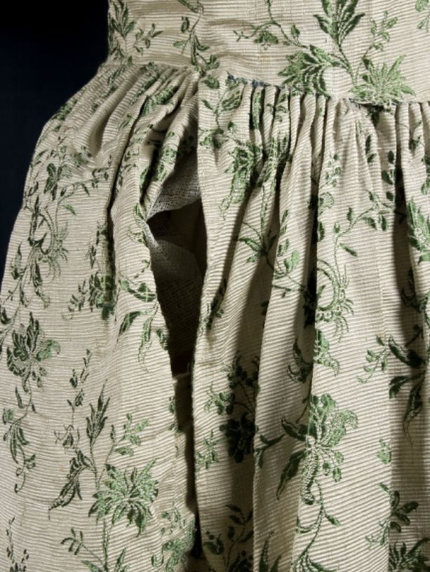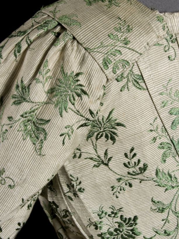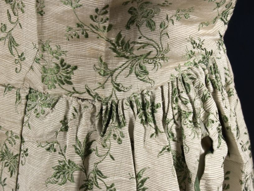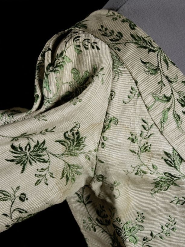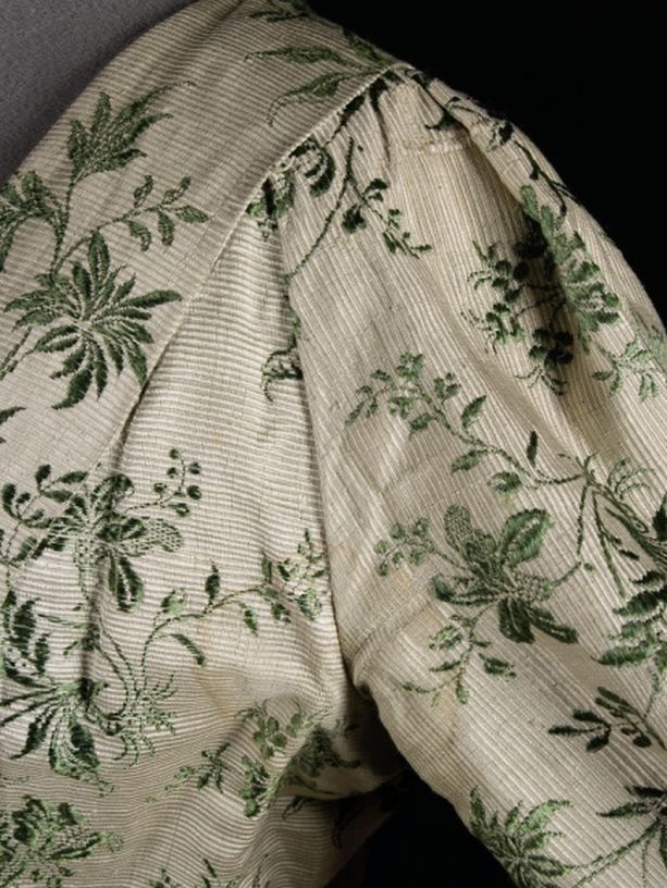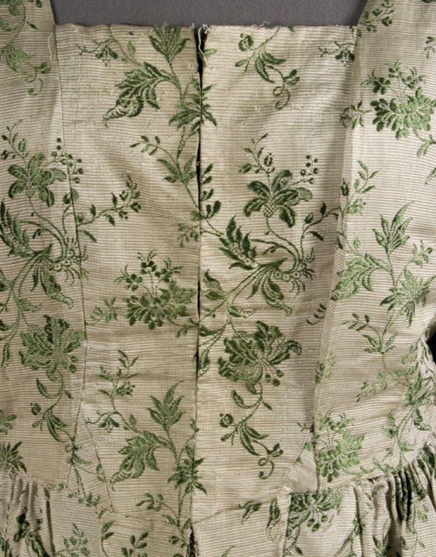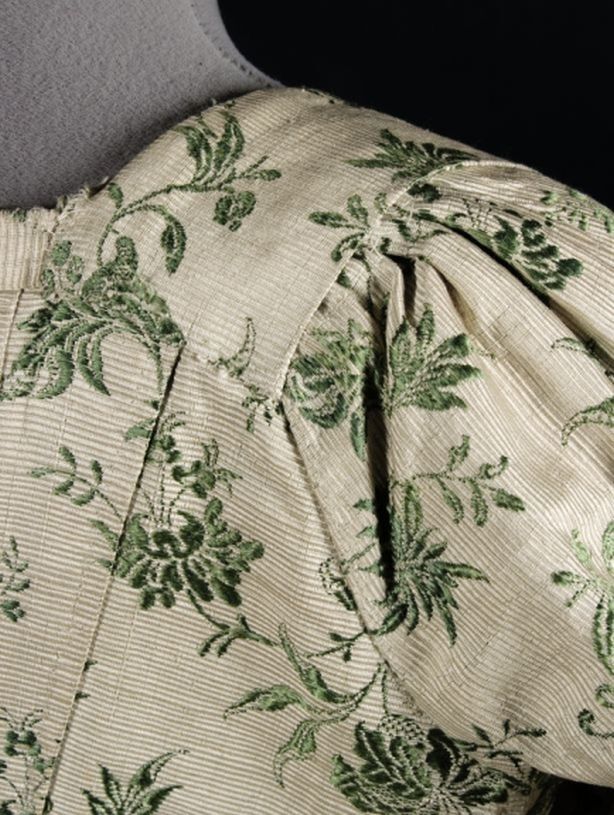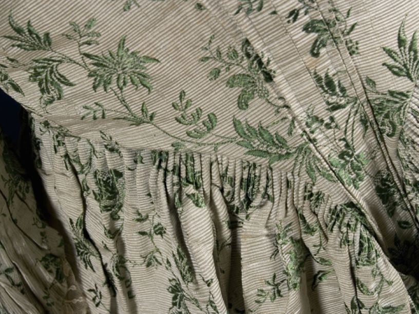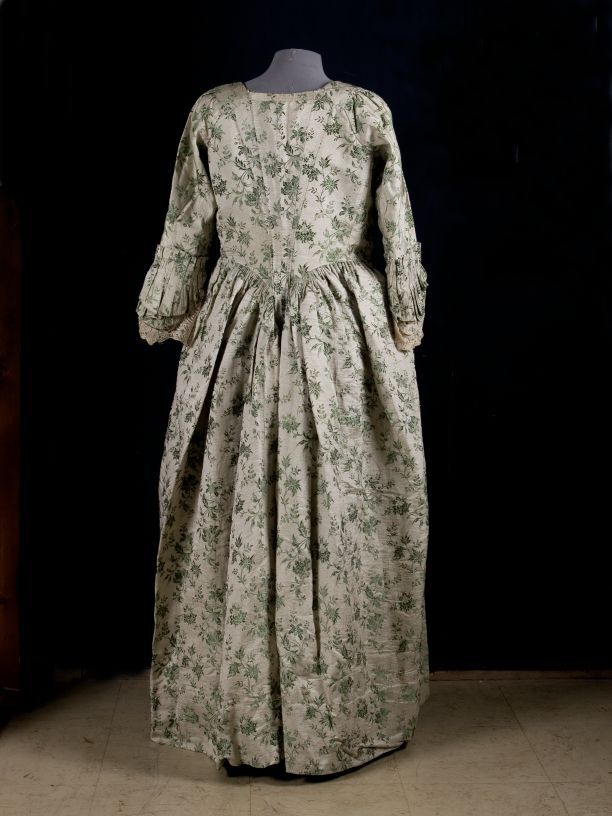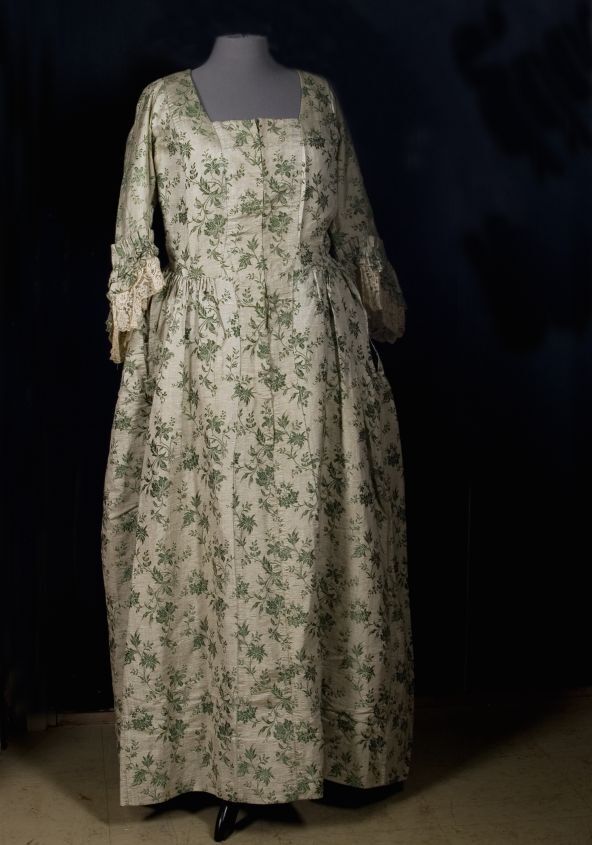 Zijden damesjapon ‘robe à l’Anglaise’ met openvallende rok met exotisch bloempatroon