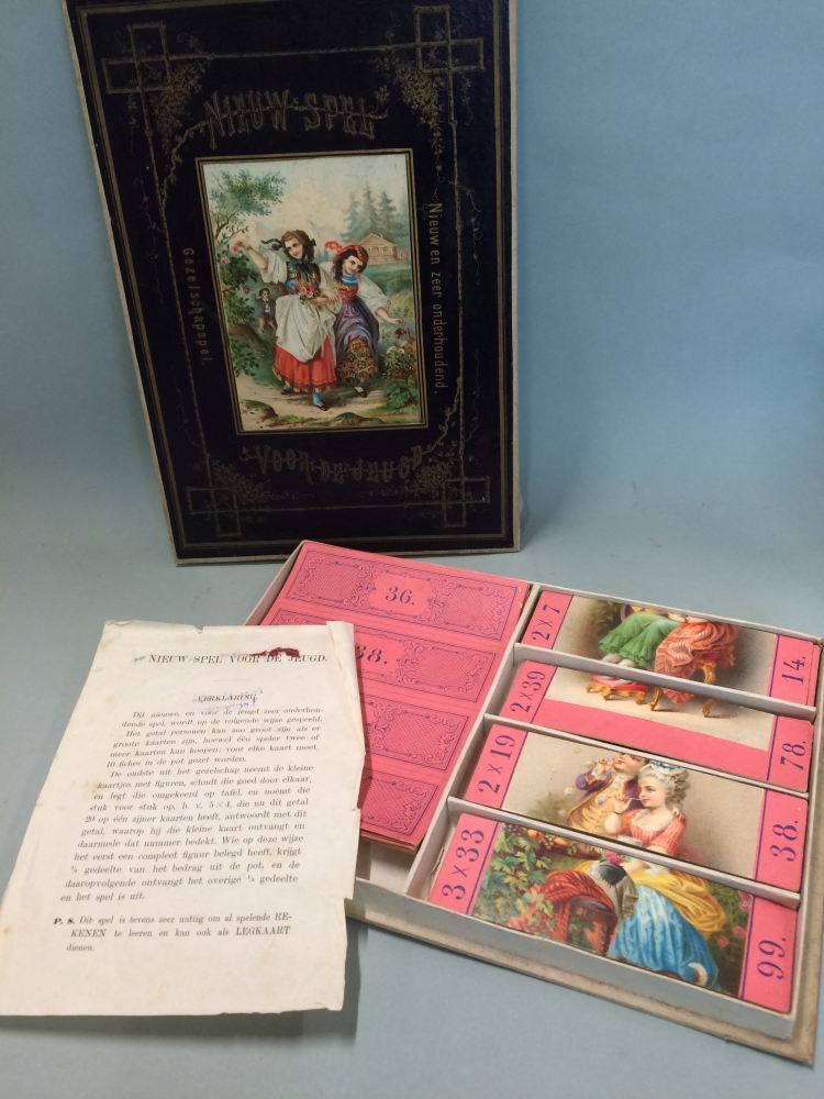 Lottospel in doos met opschrift Nieuw Spel voor de Jeugd; Nieuw en zeer onderhoudend gezelschapsspel