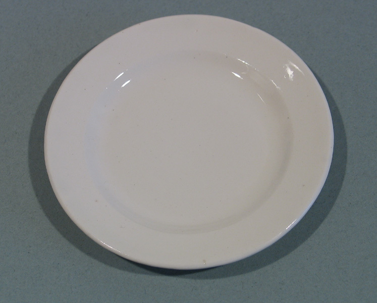 Diep bord, wit, van speelgoedservies. Nummers 0055 t/m 0066 en 0100 behoren waarschijnlijk tot hetzelfde eetservies.