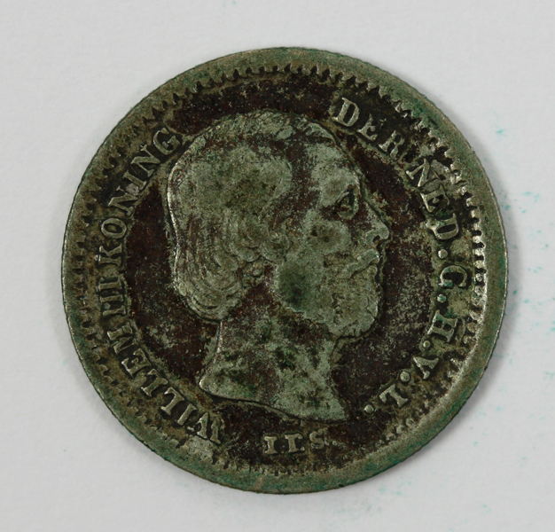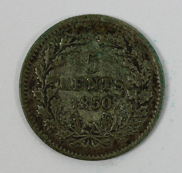 Stuiver uit de regeringsperiode van koning Willem III. Op de voorzijde zijn portret met naar rechts gewend gezicht. Op de keerzijde de waarde binnen twee samengebonden eikentakken.