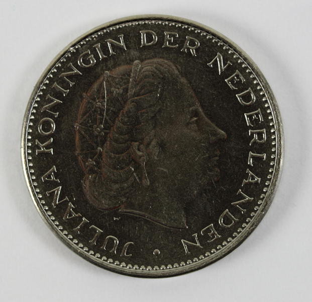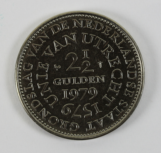 Rijksdaalder uit de regeringsperiode van koningin Juliana. Op de voorzijde haar portret met gezicht naar rechts gewend. Op de keerzijde een opschrift over de Unie van Utrecht.