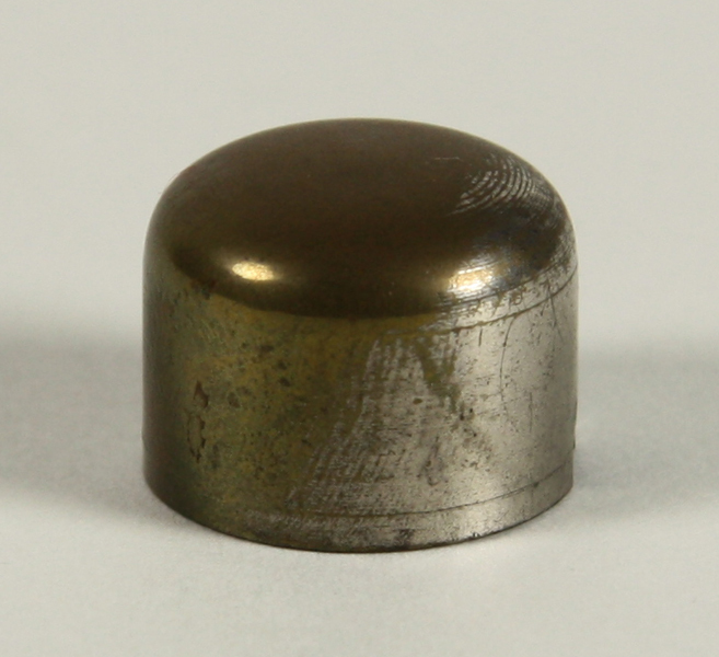 Dop van brander van theelicht, rond, gewelfd, goudkleurig met uitsparingen voor stangetje.