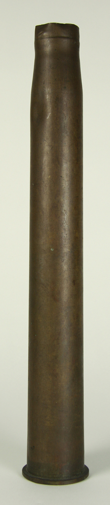 Huls van puntvormige granaat, aan de onderzijde een opschrift ingestanst.