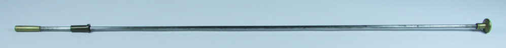 Stamper van matchgeweer. Met een huls aan de onderzijde, een schuivende huls in het midden en een platte ronde knop aan de bovenzijde, gegraveerd met 'E.C. SMITH'.