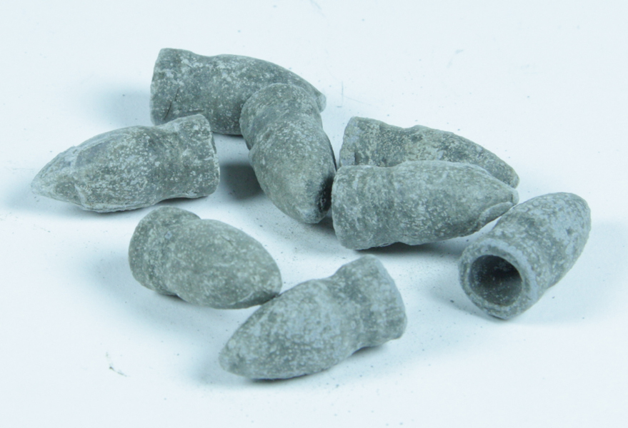 Acht puntvormige miniékogels, voorzien van kegelvormige holte in de basis.