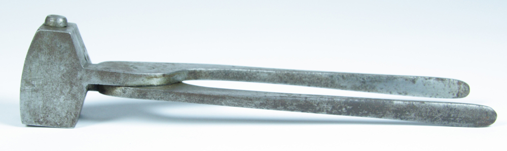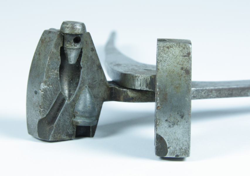 Kogelgiettang, waarin twee soorten puntvormige kogels gegoten kunnen worden. Op de bovenzijde gegraveerd 'E.C. Smith'. In de kop zit een kogel.