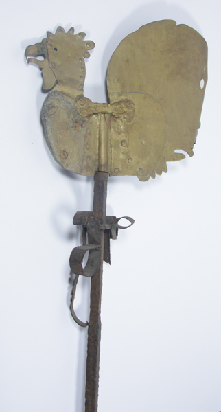 Windhaan op standaard van de toren van de St. Catharijnekerk. Goudkleurig.