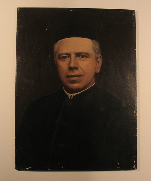 Foto op paneel, polychroom beschilderd, met het portret van pastoor Otto van der Meer. Hij was stichter van de Franciscanessen te Brielle in 1893. Zij begonnen aan de Nobelstraat 20 een naai- en bewaarschool.