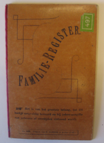 Familieregister (trouwboekje) van Pieter Stephanus van Andel en Trijntje Kooijman.