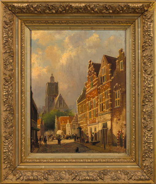 Schilderij op paneel, olieverf, met gezicht op het Wellerondom. Op de achtergrond wordt Sint Catharijnekerk afgebeeld met een koepel op de toren. Rondom het Wellerondom lopen enkele mensfiguren. Dit schilderij is naar C. Springer vervaardigd. Het schilderij heeft een gedecoreerde houten lijst voorzien van bladgoud. Aan de achterkant van het schilderij zitten twee metalen haken ...