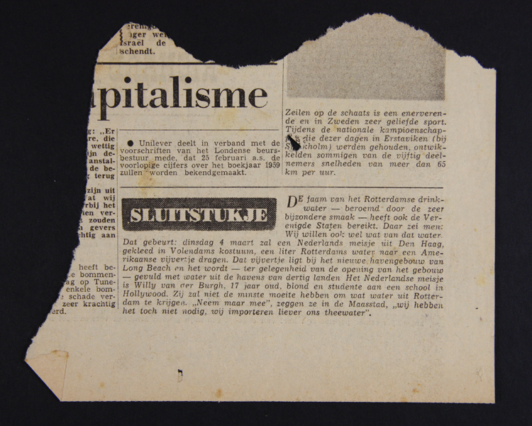 Krantenartikeltje waarin de 17jarige Willy van der Burgh wordt genoemd; vermoedelijk famillie van bakker van der Burgh