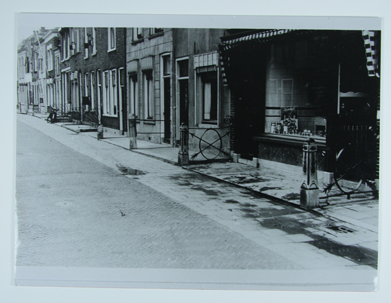 Foto op karton van de Voorstraat. Op de achterzijde vijf stukjes klitteband.