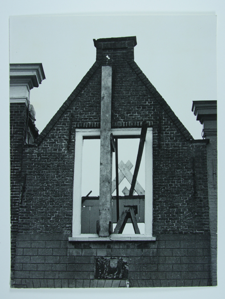 Foto van een pand in Brielle. De foto is op een achterblad vastgeplakt geweest en toont een deel van een pand dat verbouwd wordt.