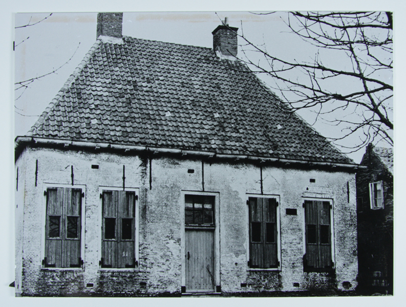 Foto op karton van de Provoost voor de restauratie. Aan de achterzijde vijf stukjes klitteband.