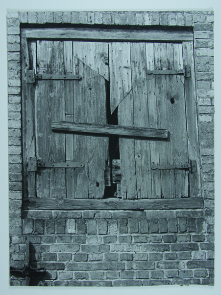 Foto op karton van een luik in een pand te Brielle. Aan de achterzijde drie stukjes klitteband.