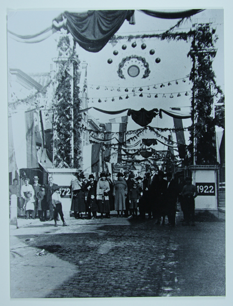 Foto op karton van de 1 Aprilviering in 1922. Aan de achterzijde vijf stukjes klitteband.