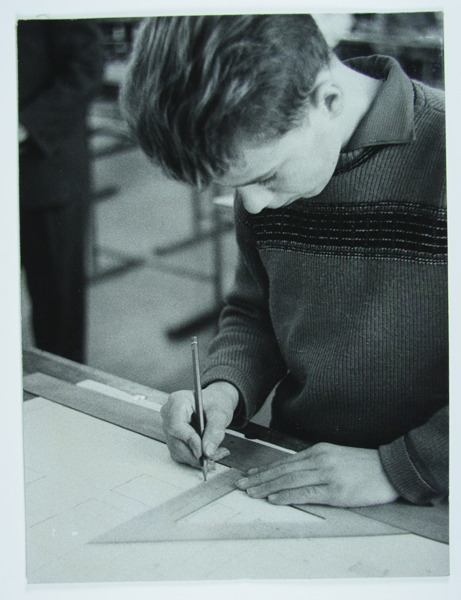 Portret van een jongen die een technische tekening aan het maken is.