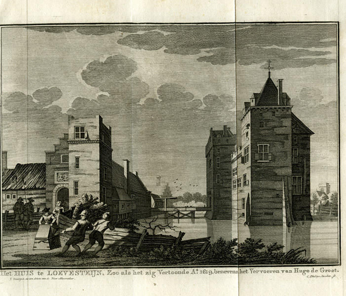 Het huis te Loevesteijn, Zoo als het zig Vertoonde Ao. 1619. benevens het Vervoeren van Hugo de Groot.
