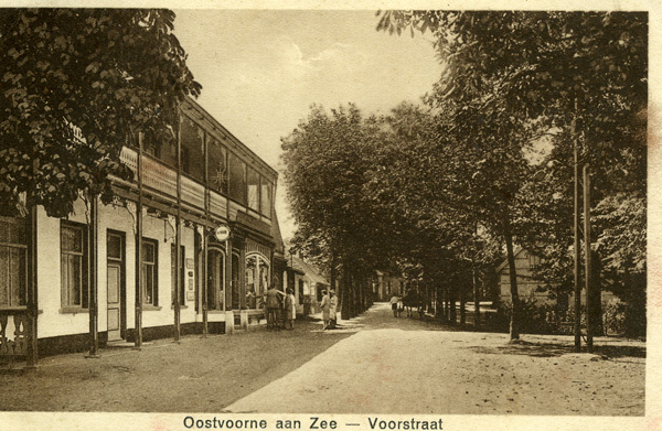 Ansichtkaart, zwart/wit met gezicht op de Voorstraat te Oostvoorne.