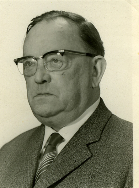 Foto, zwart/wit met portret van een man, de heer Moerman. Foto heeft een wit kader.