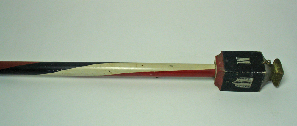 Stok, brandweerstok, werd oorspronkelijk door de brandweer gebruikt om het publiek bij een brand op een afstand te houden. Stok beschilderd in drie gedraaide kleuren rood, wit, blauw. Onderkant van stok is blauw/zwart. Bovenkant stok is voorzien van vierkantige blauw/zwarte bekroning. Op een zijde van de bekroning een wapen, op andere zijden letters; A, B ...