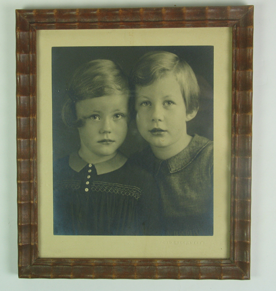 Foto, zwart/wit. met de portretten van Emilie Helene Elisabeth (Elisabeth 1928- ) en Alieda Maria (Liedeke 1926 - ) Roest van Limburg in hun kinderjaren. Foto in geschulpte, houten lijst.